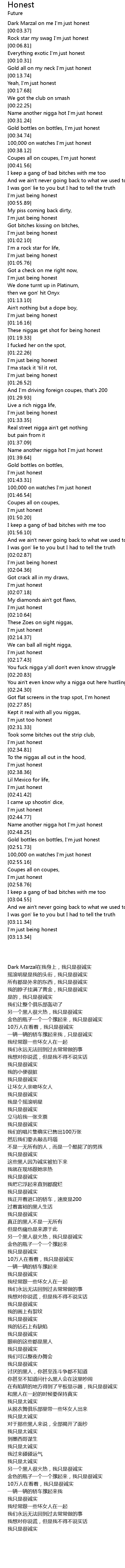 Gold all on my neck I'm just honest |