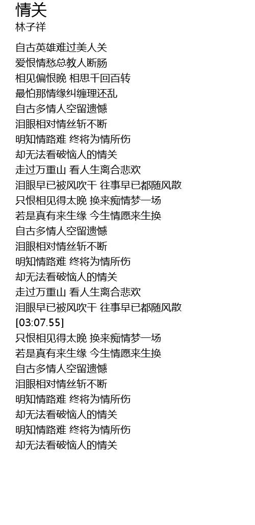 | [00:20.15] | zì gǔ yīng xióng nán guò měi rén guān |