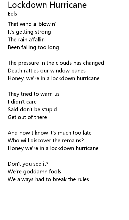 | Honey we're in a lockdown hurricane | |