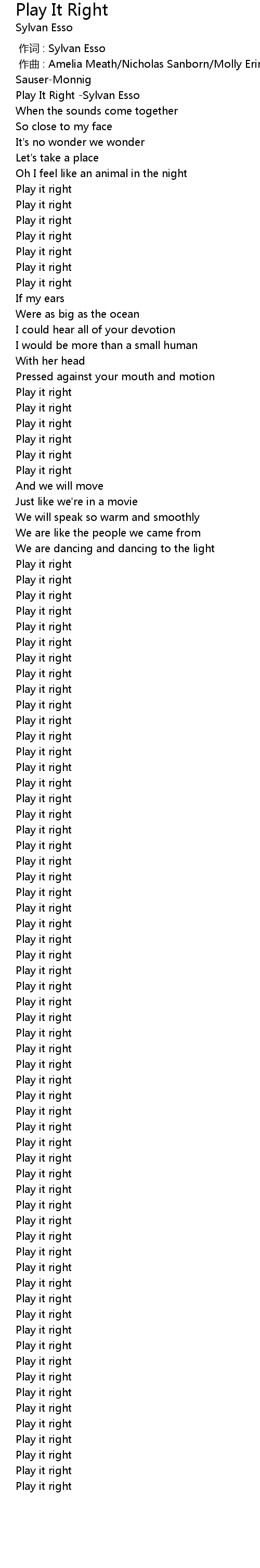| [00:00.00] | Play It Right -Sylvan Esso |
