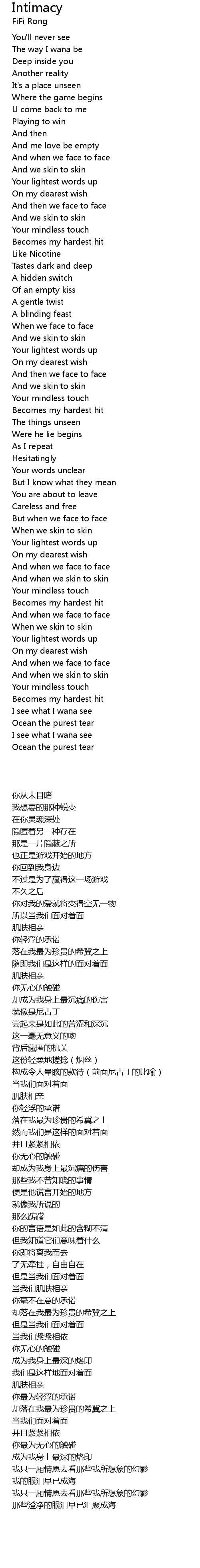 | Song | Intimacy |