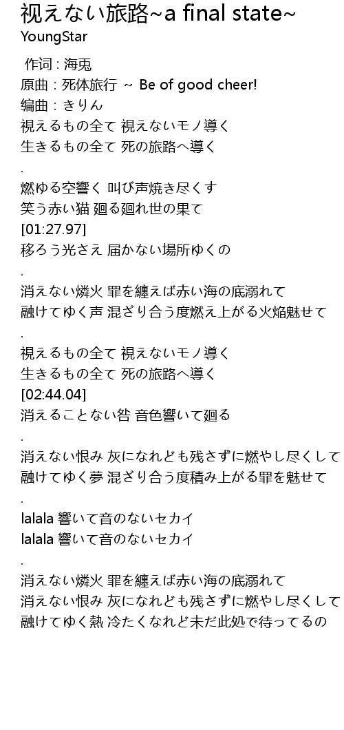 | [00:03.00] | 原曲:死体旅行 ~ Be of good cheer! |