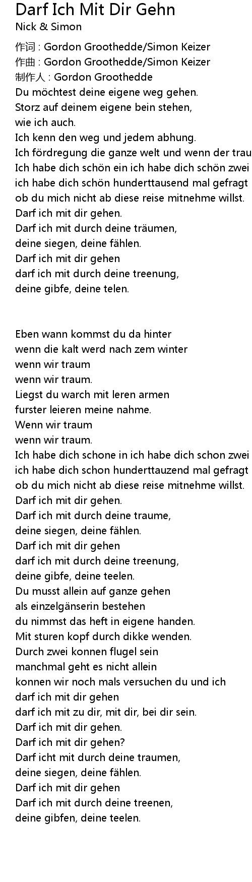 | darf ich mit zu dir, mit dir, bei dir sein. | |
