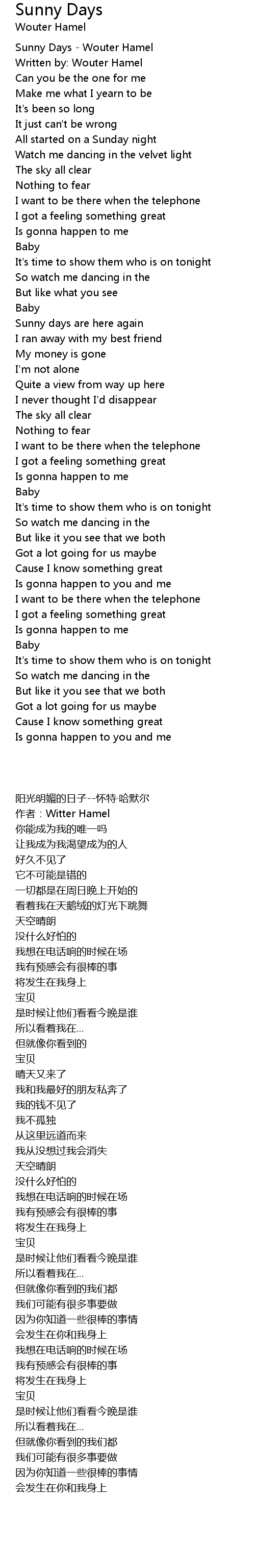 Sunny Days - Wouter Hamel |