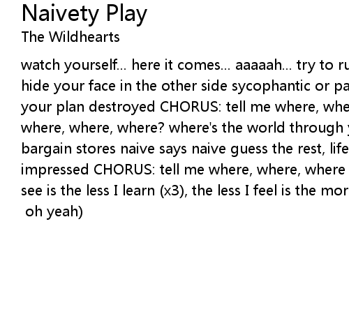 watch yourself... here it comes... aaaaah... try to run and you try to hide, hide your face in the other side sycophantic or paranoid? suck on the milk of your plan destroyed CHORUS: tell me where, where, where the fuck you been? where, where, where? where's the world through your palace walls? Babylon in the bargain stores naive says naive guess the rest, life's a play to the soon impressed CHORUS: tell me where, where, where the fuck you been? (x3) the more I see is the less I learn (x3), the less I feel is the more I burn CHORUS: tell me where, where, where the fuck you been? (x3) ([where... where...] oh yeah) |