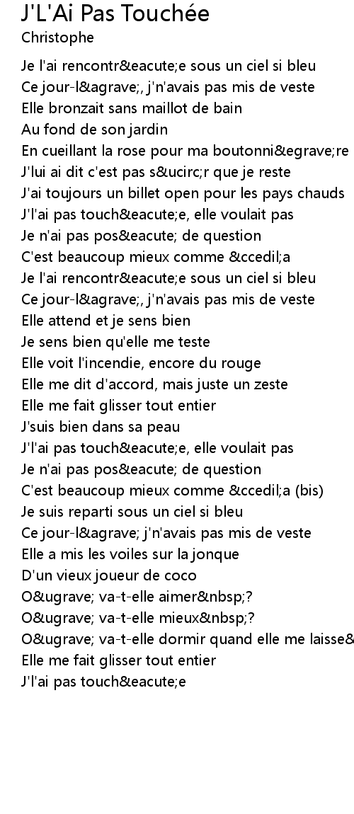 J'L'Ai Pas Touchée J' L' Ai Pas Touche e Lyrics