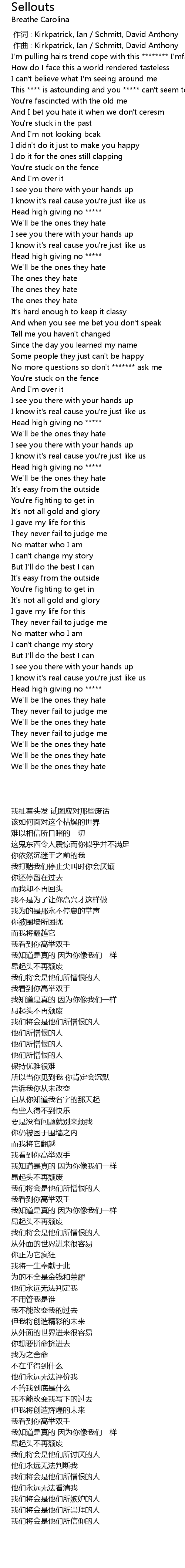 | [02:15.900] | Head high giving no ***** |