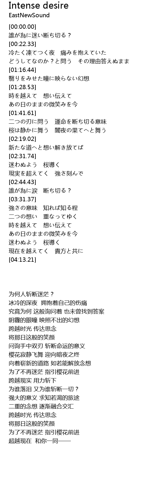 | [03:22.26] | 誰が為に涙 断ち切る? |