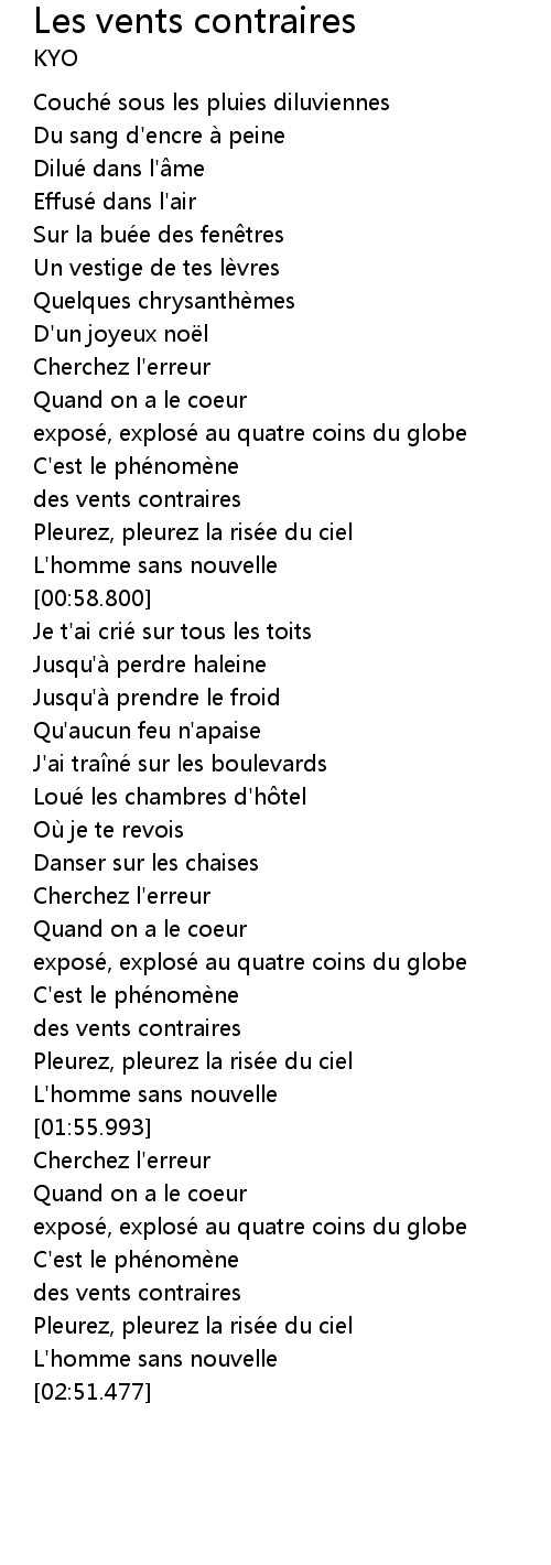 | [01:03.093] | Je t'ai crié sur tous les toits |
