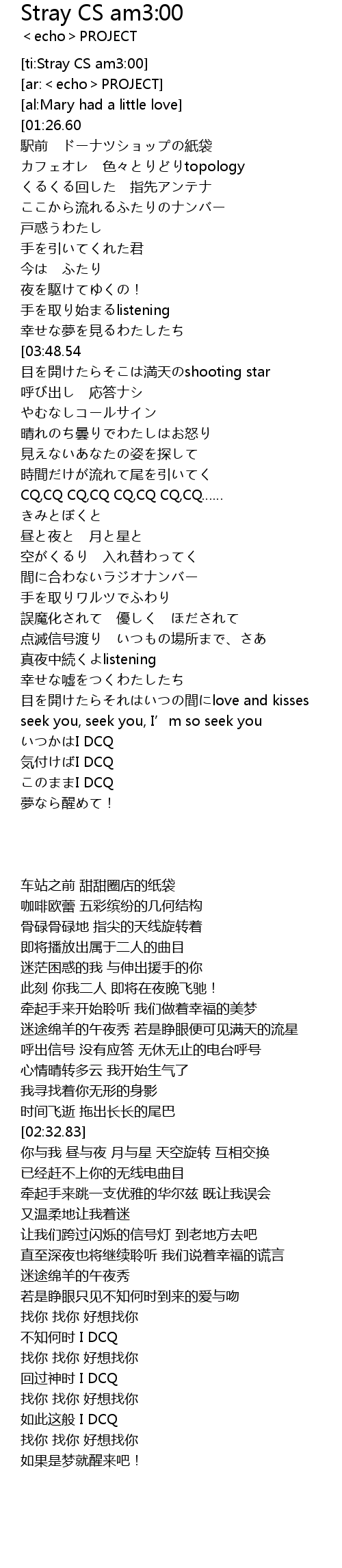 | [01:37.77][03:48.54] | はぐれた羊のmidnight show |
