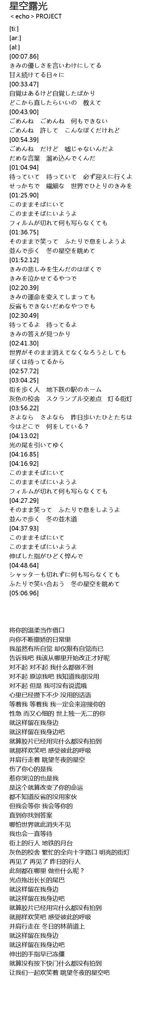 | [04:53.95] | ふたりで笑い合おう 冬の星空を眺めて |
