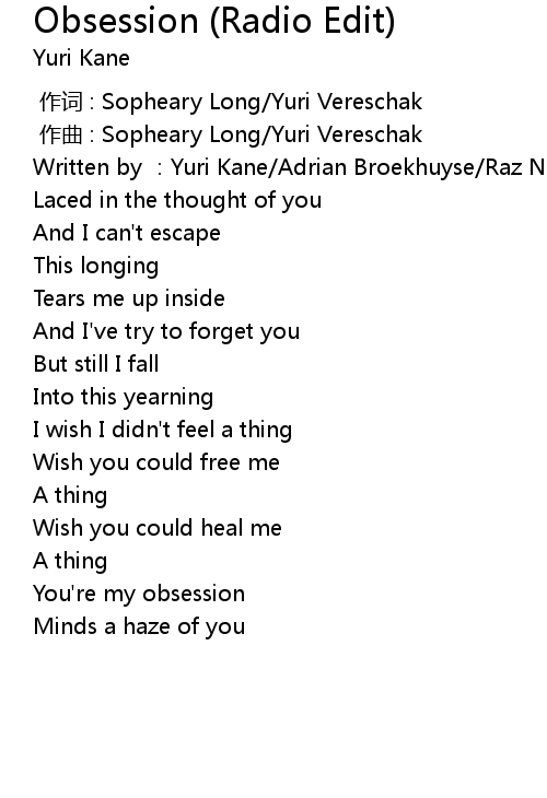 | [01:48.608] | You're my obsession |