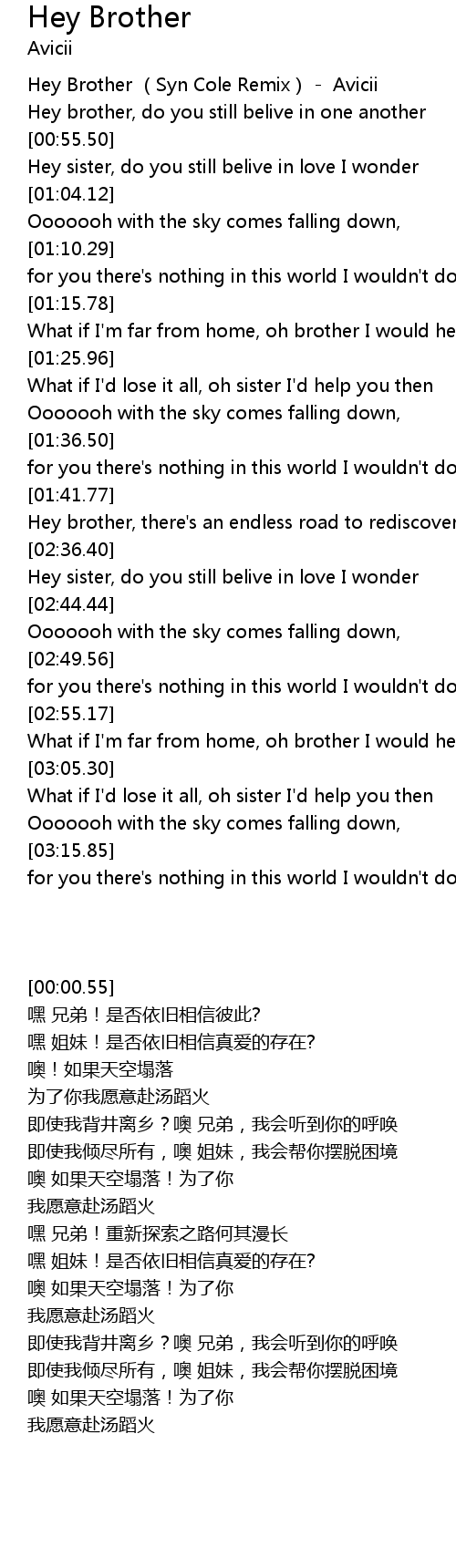 | [00:00.55] | Hey Brother Syn Cole Remix Avicii |