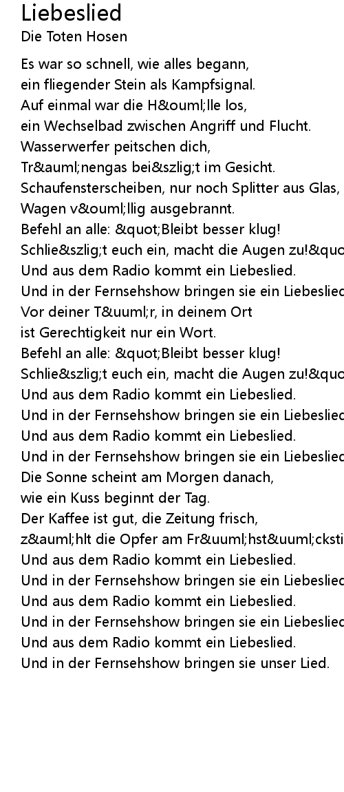 Und in der Fernsehshow bringen sie ein Liebeslied. |