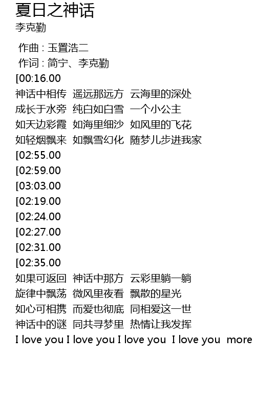| [03:07.00][02:19.00][01:15.00] | I love you I love you I love you more |