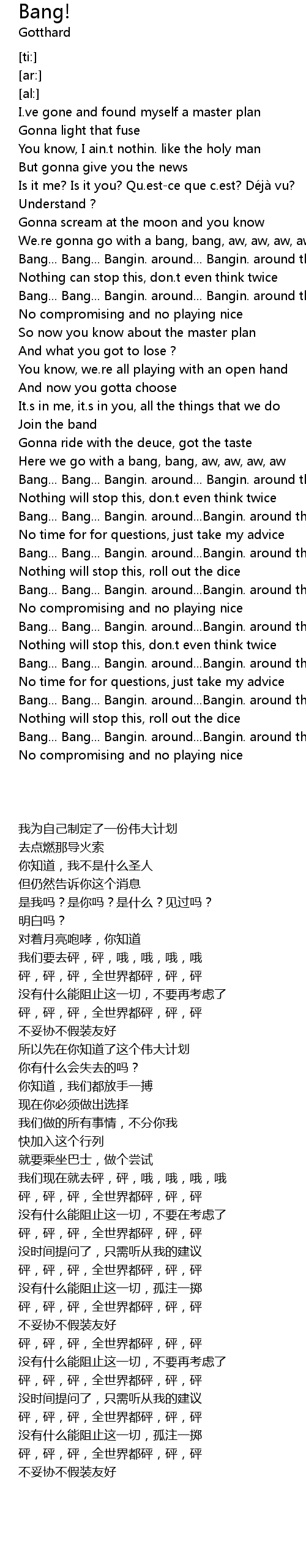 | [00:47.30] | We.re gonna go with a bang, bang, aw, aw, aw, aw |
