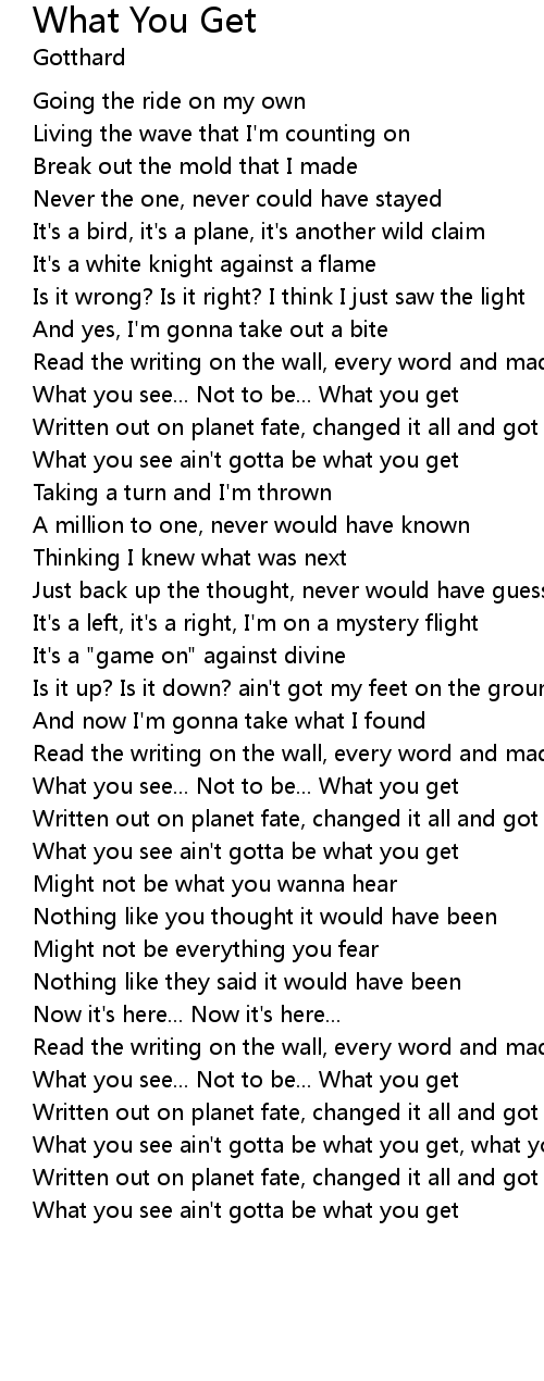 | [03:25.61] | What you see ain't gotta be what you get, what you get |