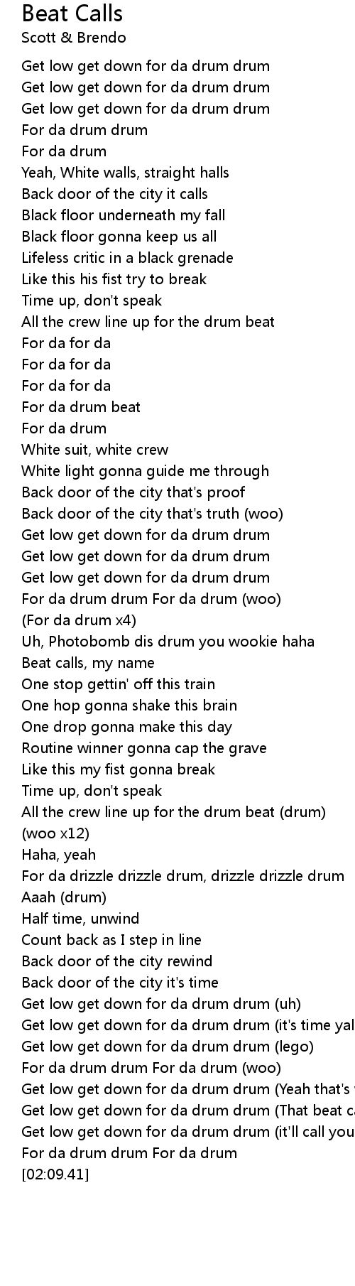 Get low get down for da drum drum (Yeah that's what I'm talkin' about) |
