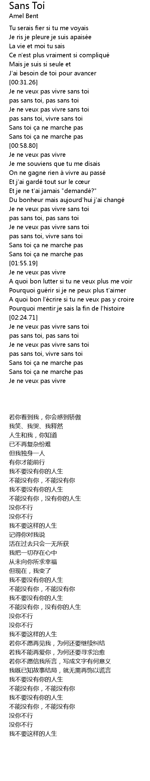 | [02:26.74] | Je ne veux pas vivre sans toi |