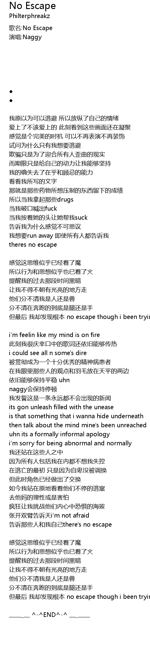 | 告诉那些人和我自己there's no escape | |
