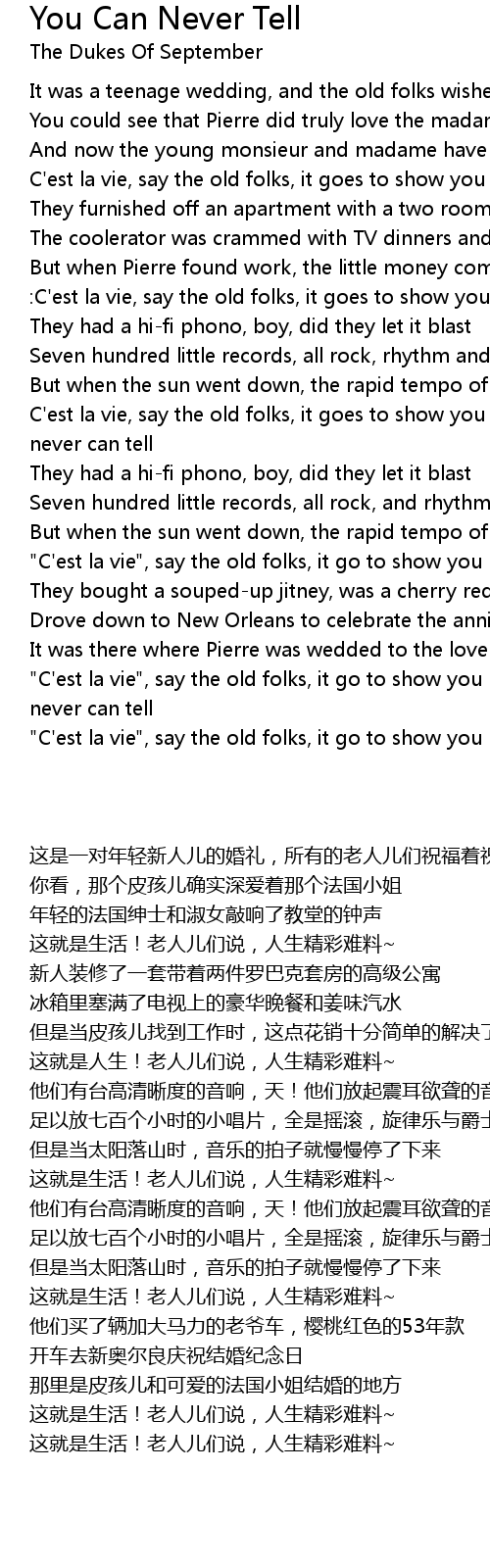 [02:50:00] "C'est la vie", say the old folks, it go to show you never can tell never can tell