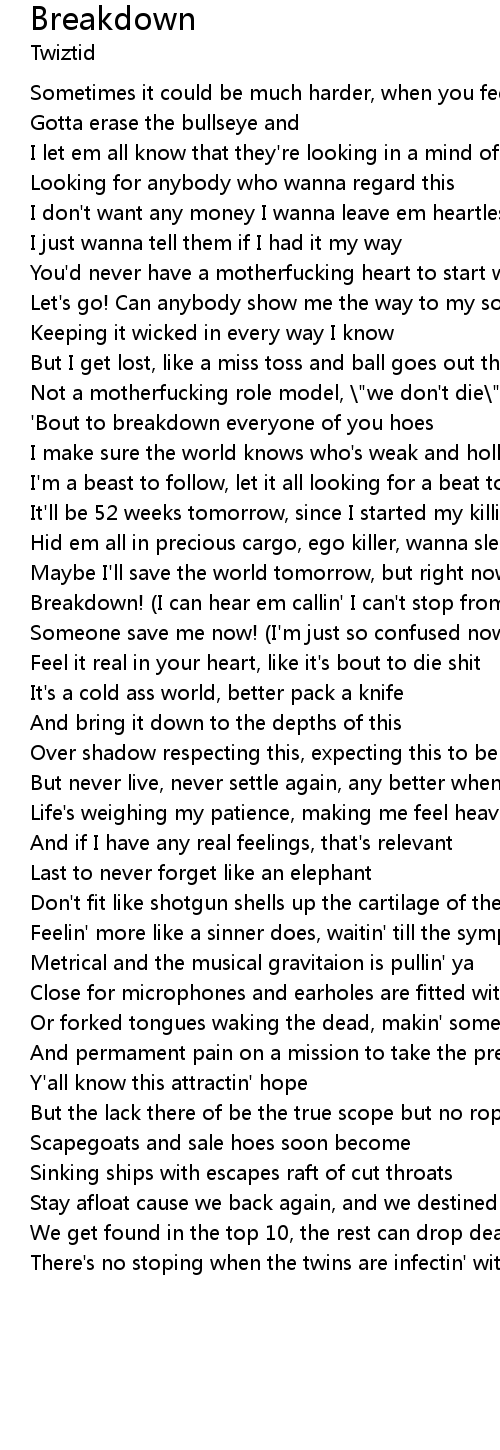 Breakdown! (I can hear em callin' I can't stop from fallin') |