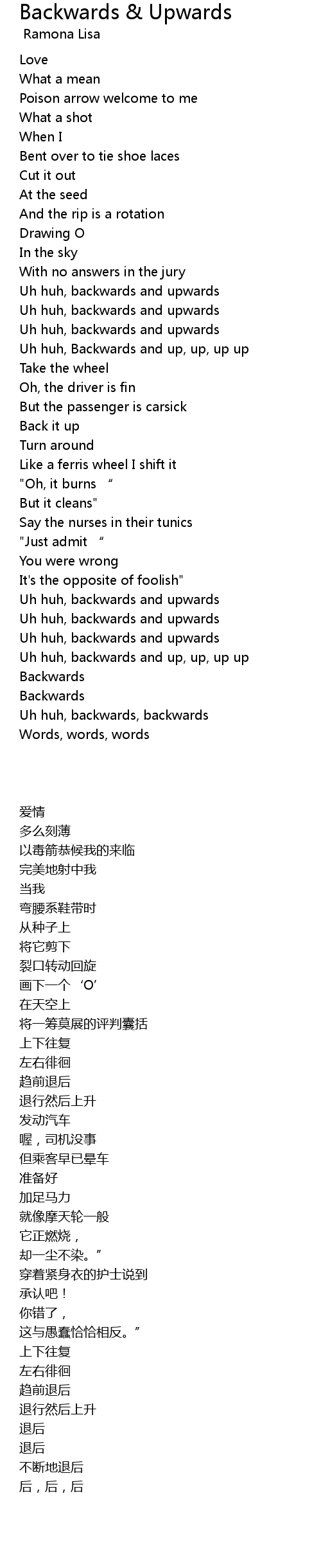 | Song | Backwards & Upwards |