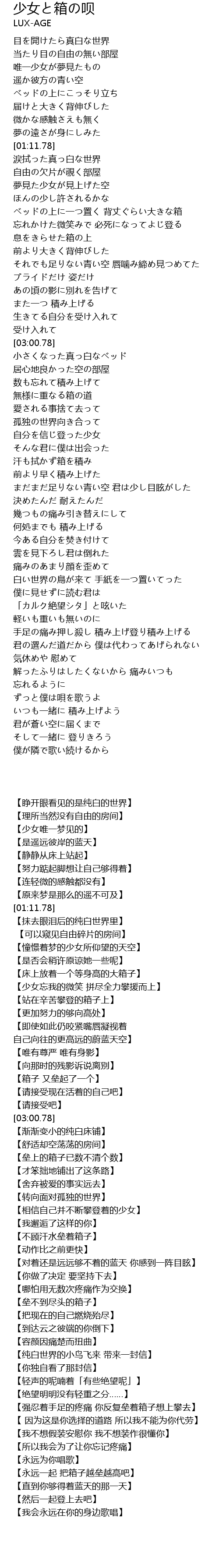 | [01:42.72] | ベッドの上に一つ置く 背丈ぐらい大きな箱 |