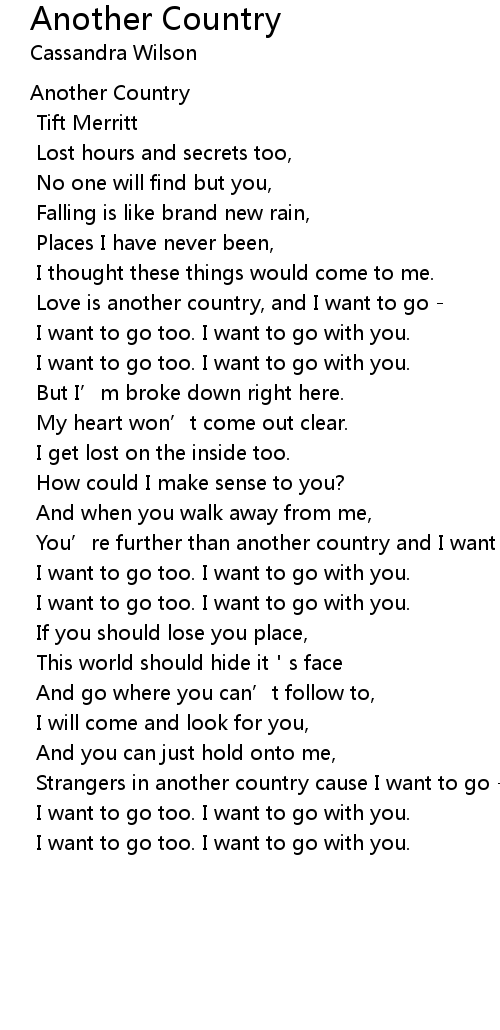| Love is another country, and I want to go - | |