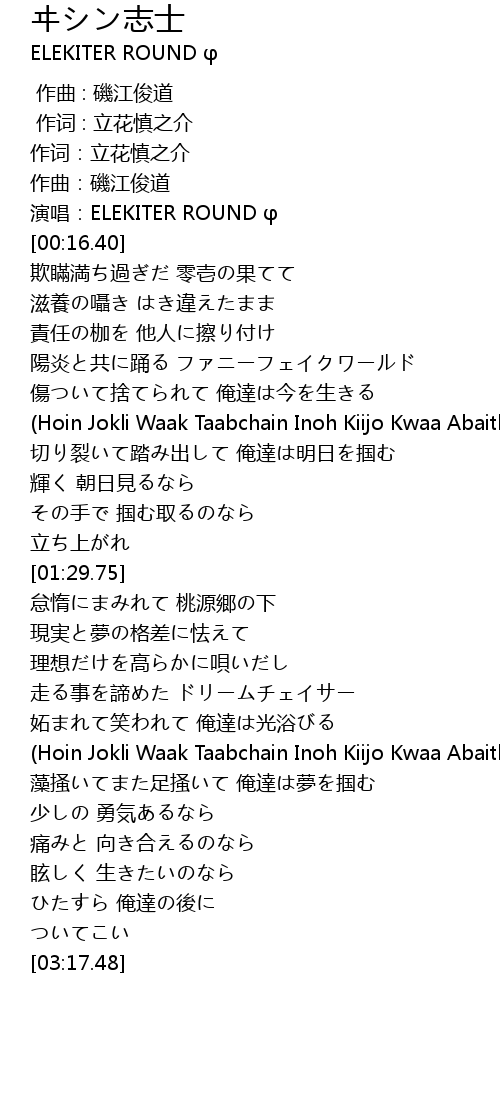 | [00:10.16] | 演唱:ELEKITER ROUND φ |