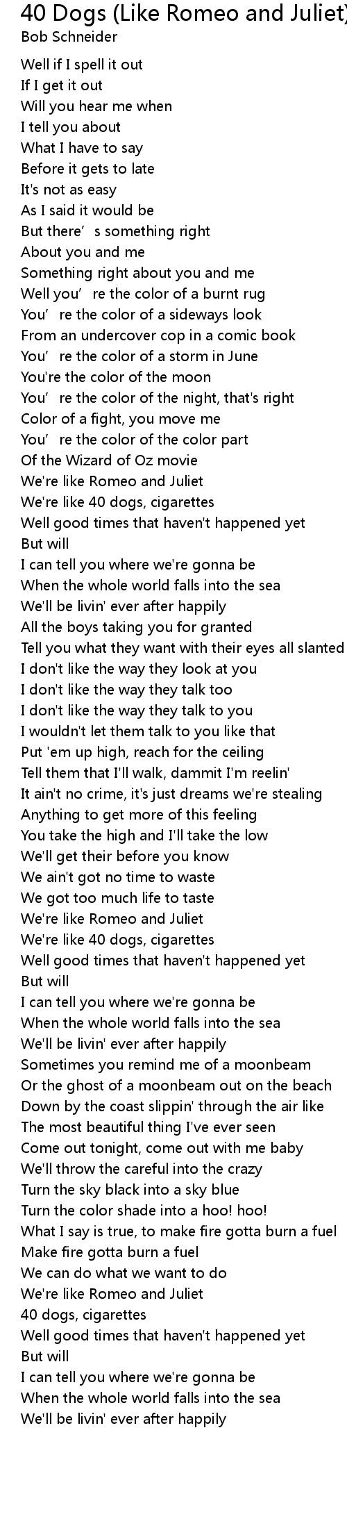 | Song | 40 Dogs (Like Romeo and Juliet) |