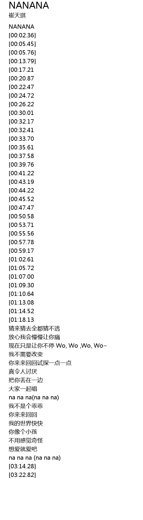 | [02:23.19][01:14.52] | na na na (na na na) |