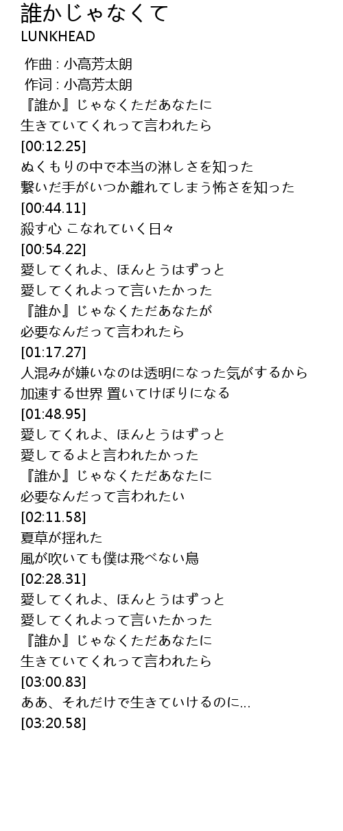 | [00:00.50] | 『誰か』じゃなくただあなたに |