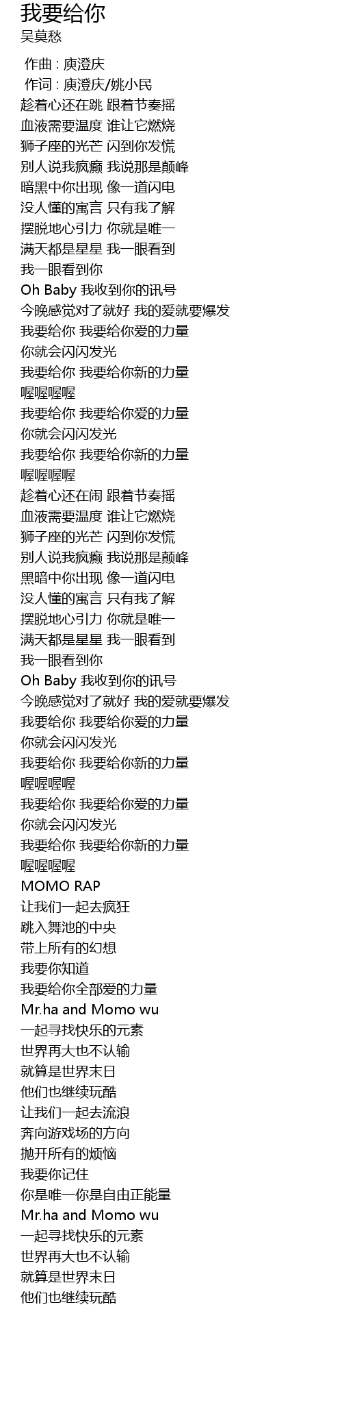 | [02:58.63] | 我要给你 我要给你爱的力量 |