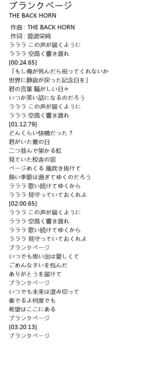 | [00:00.00] | 作曲 : THE BACK HORN |