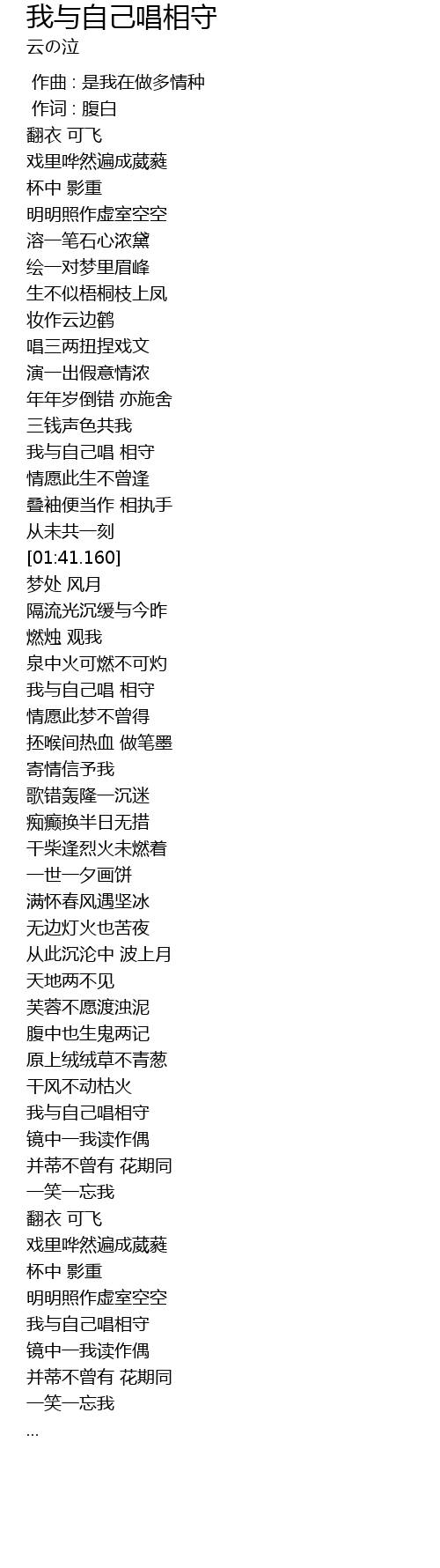 | [03:34.680] | wǒ yǔ zì jǐ chàng xiāng shǒu |
