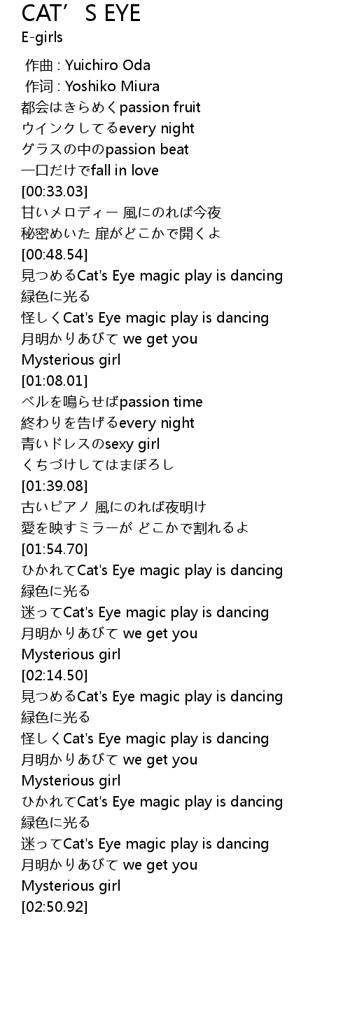 | [00:55.77] | 怪しくCat's Eye magic play is dancing |