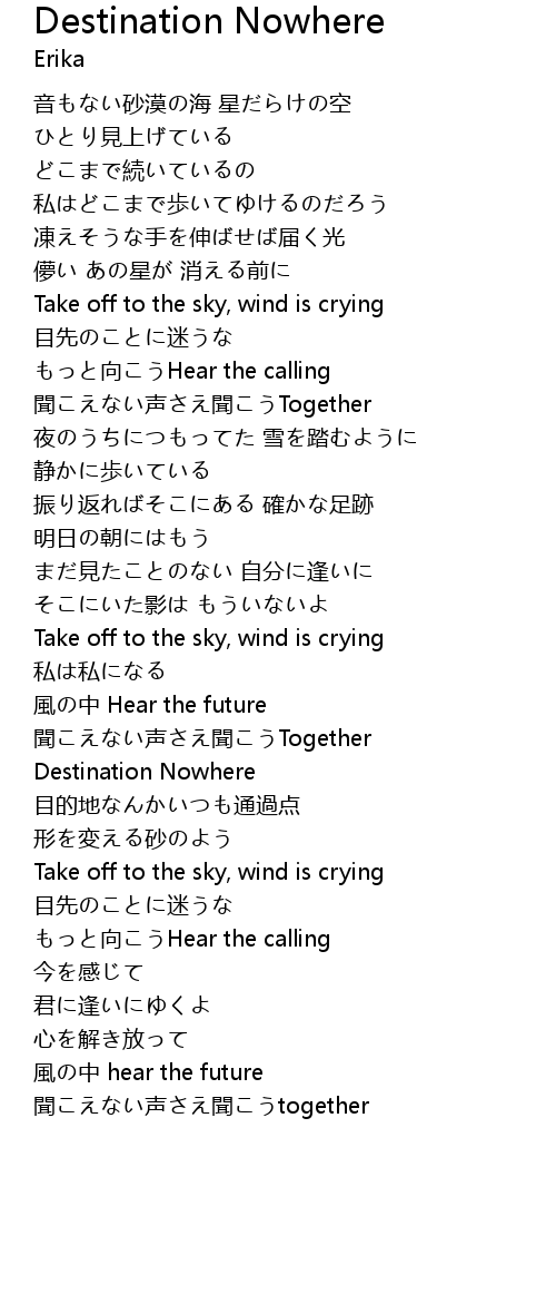 | Song | Destination Nowhere |