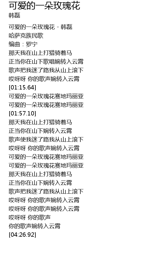 | [00:02.68] | 可爱的一朵玫瑰花 - 韩磊 |