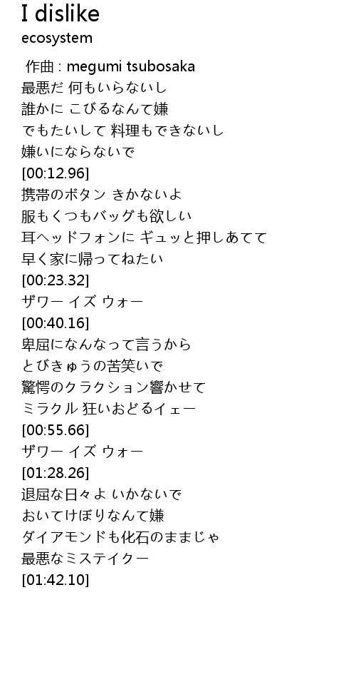 | Song | I dislike |