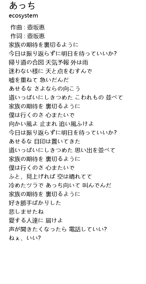 | [00:00.026] | 作词 : 壺坂恵 |