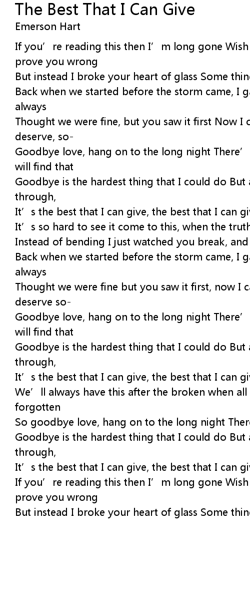| It' s the best that I can give, the best that I can give to you | |