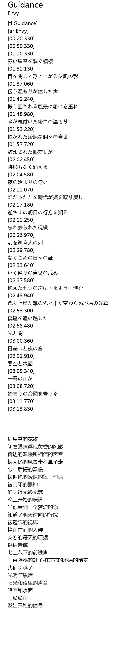 | [01:30.140] | 赤い星空を繋ぐ模様 |