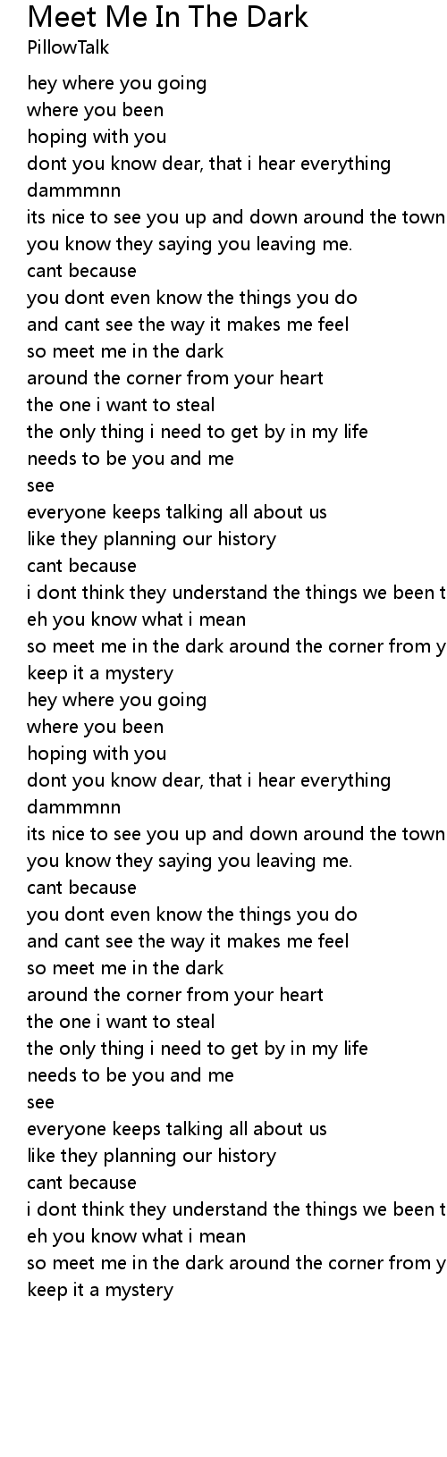 so meet me in the dark around the corner from your house |