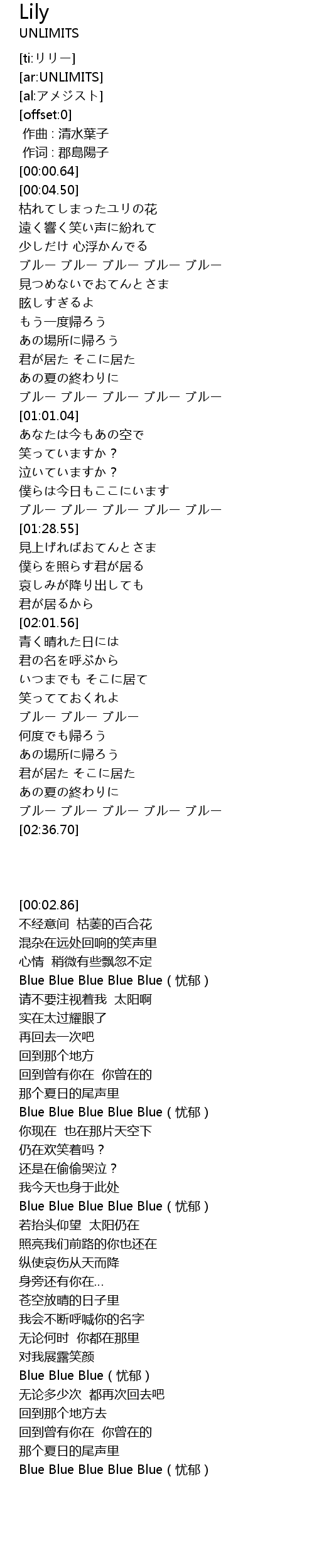 | [02:31.49] | ブルー ブルー ブルー ブルー ブルー |