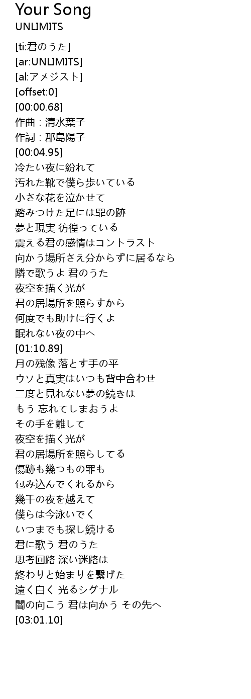 | [00:46.55] | 隣で歌うよ 君のうた |