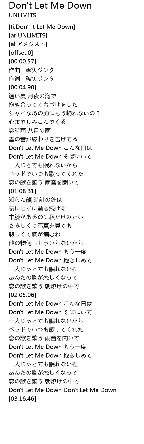 | [03:10.62] | Don't Let Me Down Don't Let Me Down |