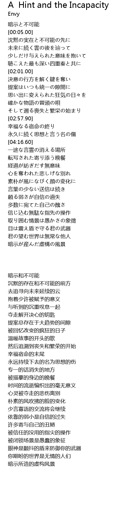 | [06:31.60] | 暗示が産んだ虚構の風景 |