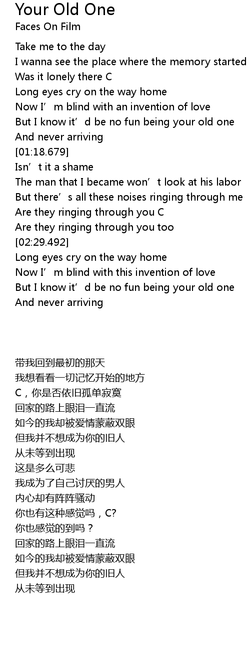 | [01:07.777] | But I know it' d be no fun being your old one |