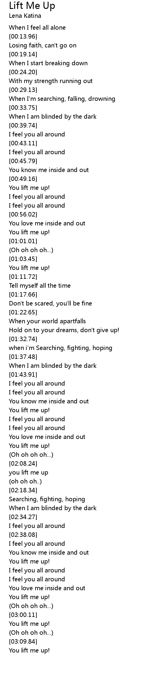 You lift me up! |